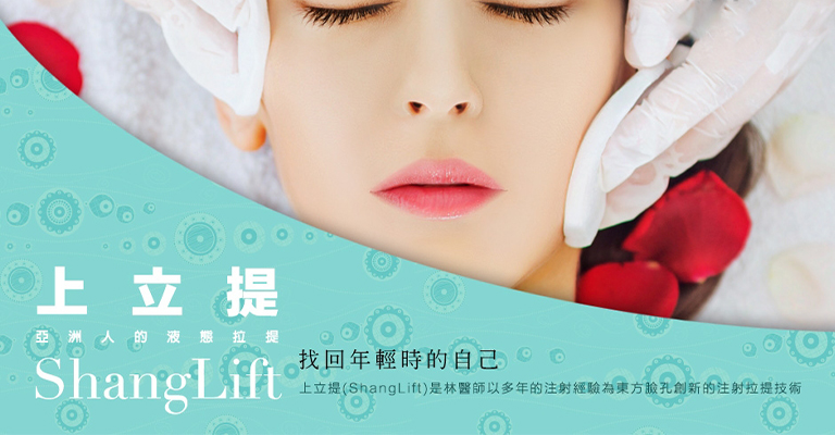 液態拉提上立提ShangLift是林上立醫師以自己在皮膚科多年臨床經驗後,為東方臉孔所研究發展出的治療手法,醫師會依據每一個病患不同的臉形輪廓,做不同的規劃和分配,在適當的部位施打可以生長膠原蛋白的3D聚左旋乳酸,根據每個人不同情況做規劃,可以得到更精緻更適合自己的效果。多年來西式的注射技巧多是以直接填補皺紋區域或施打欲改善部位,但這樣的方式多半適合長年喜歡日曬的西方人,不見得適用於亞洲臉孔。透過林上立醫師長年的注射治療經驗及臨床研究,利用來自於西方合法且安全的注射材質,特別針對亞洲臉孔開發的注射拉提技術,輕鬆讓妳做回年輕的自己。