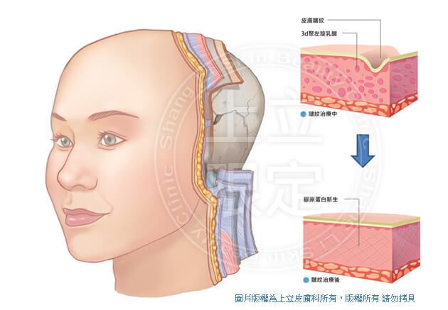 林上立醫師以自己在皮膚科多年臨床經驗後所研究發展出的治療手法,醫師會依據每一個病患不同的臉形輪廓,做不同的規劃和分配,在適當的部位施打可以生長膠原蛋白的3D聚左旋乳酸,根據每個人不同情況做規劃,可以得到更精緻更適合自己的效果。