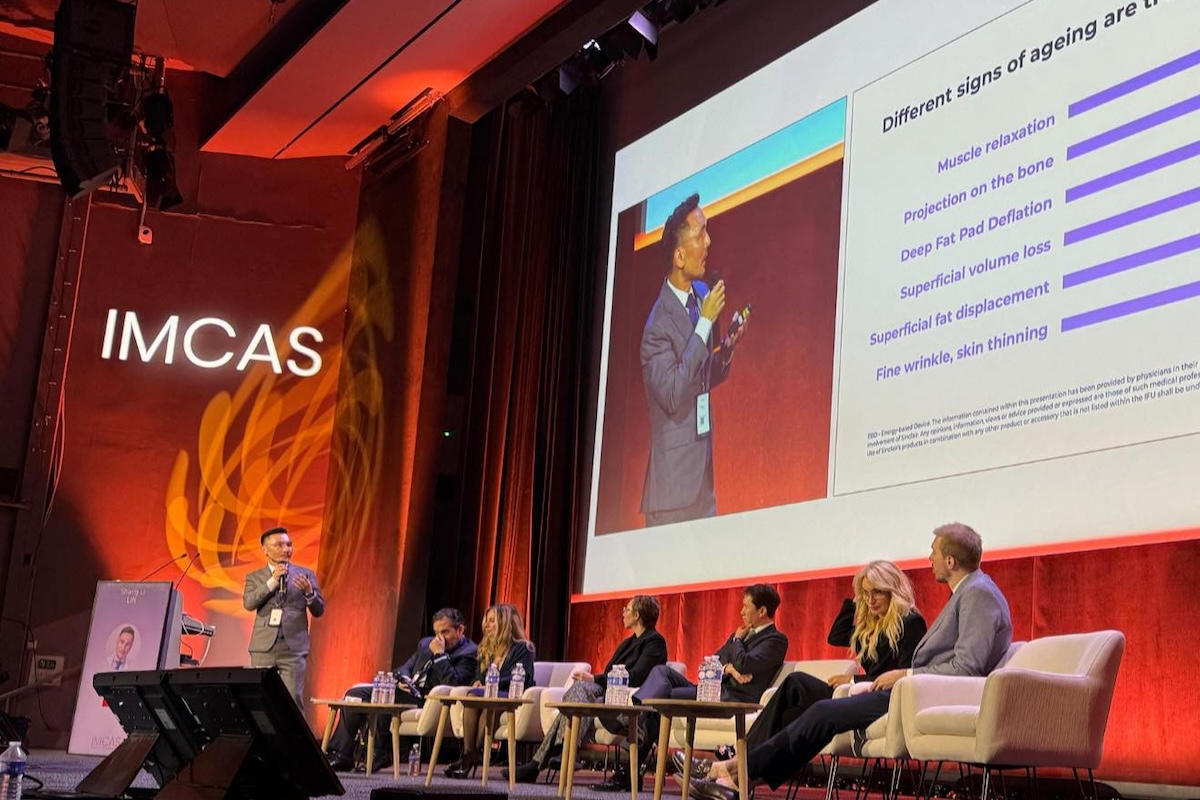 ▲林上立醫師從2019年開始,每年受邀AMWC Asia世界美容醫學高峰會演講分享,針對如何運用ELLANSÉ洢蓮絲,將亞洲人老化的徵兆(鬆弛、下垂、臉大、雙下巴),透過劑量的分配,讓臉越打越小、越打越緊實。